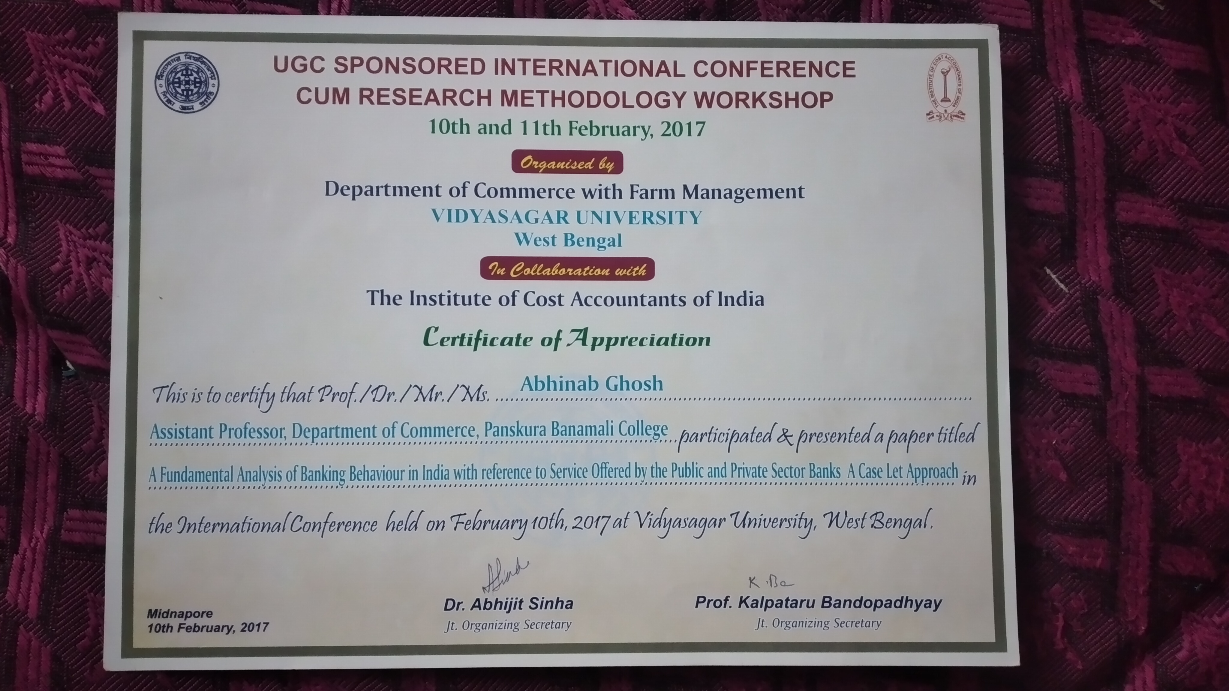 | 2017-02-10 | UGC  Sponsored International Conference Cum Research Methodology Workshop  | International |  A Fundamental Analysis of Banking Behaviour in India with reference to Services  offered by Public and private Sector Banks-A Case Let Approach |  DOWNLOAD | 2017-02-10 |