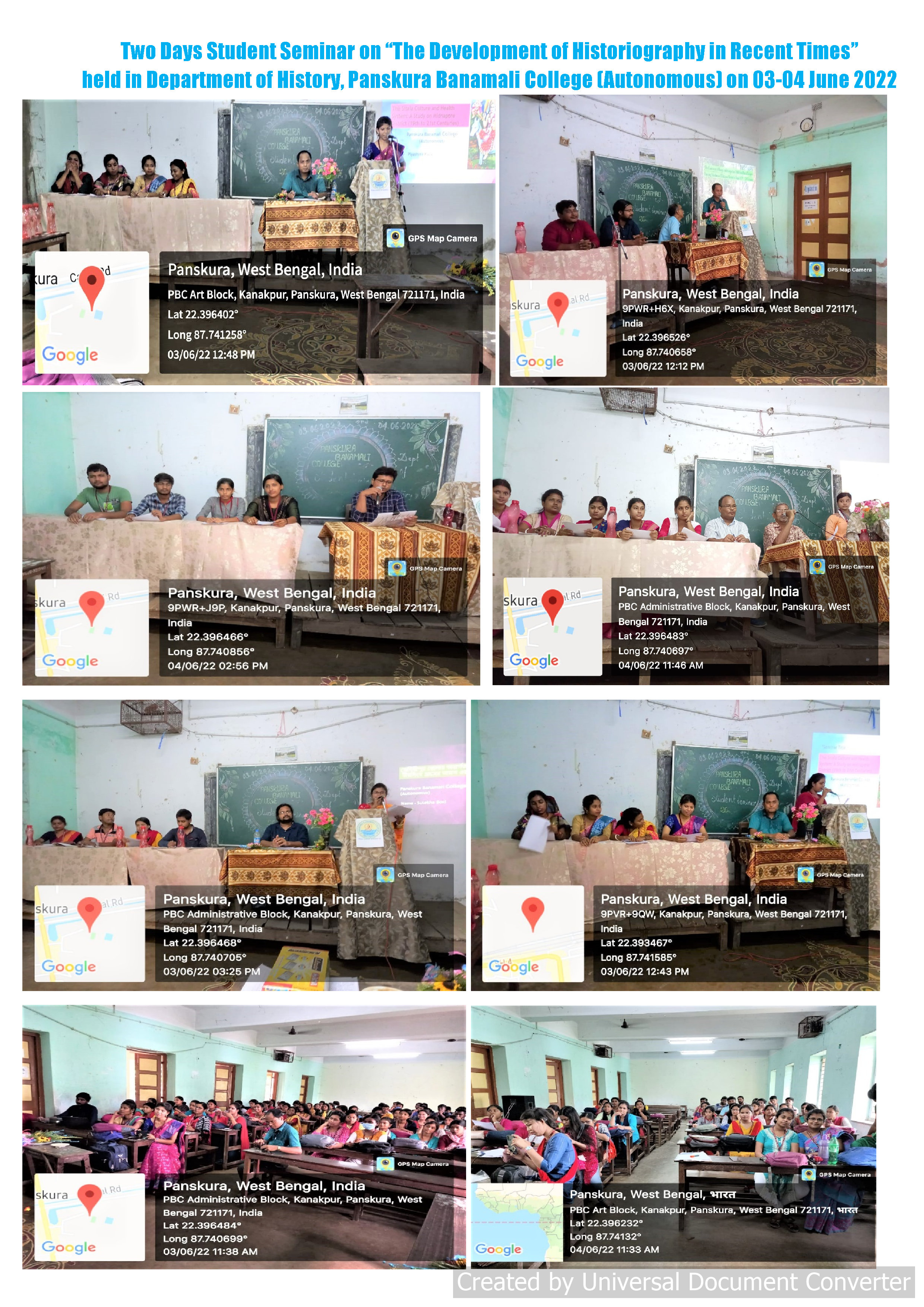 Student Seminar on “ THE DEVELOPMENT OF HISTORIOGRAPHY IN RECENT TIMES” On 03.06.2022 to 04.06.2022 Department of History Panskura Banamali College (Autonomous) Panskura RS, Purba Medinipur, WB, India