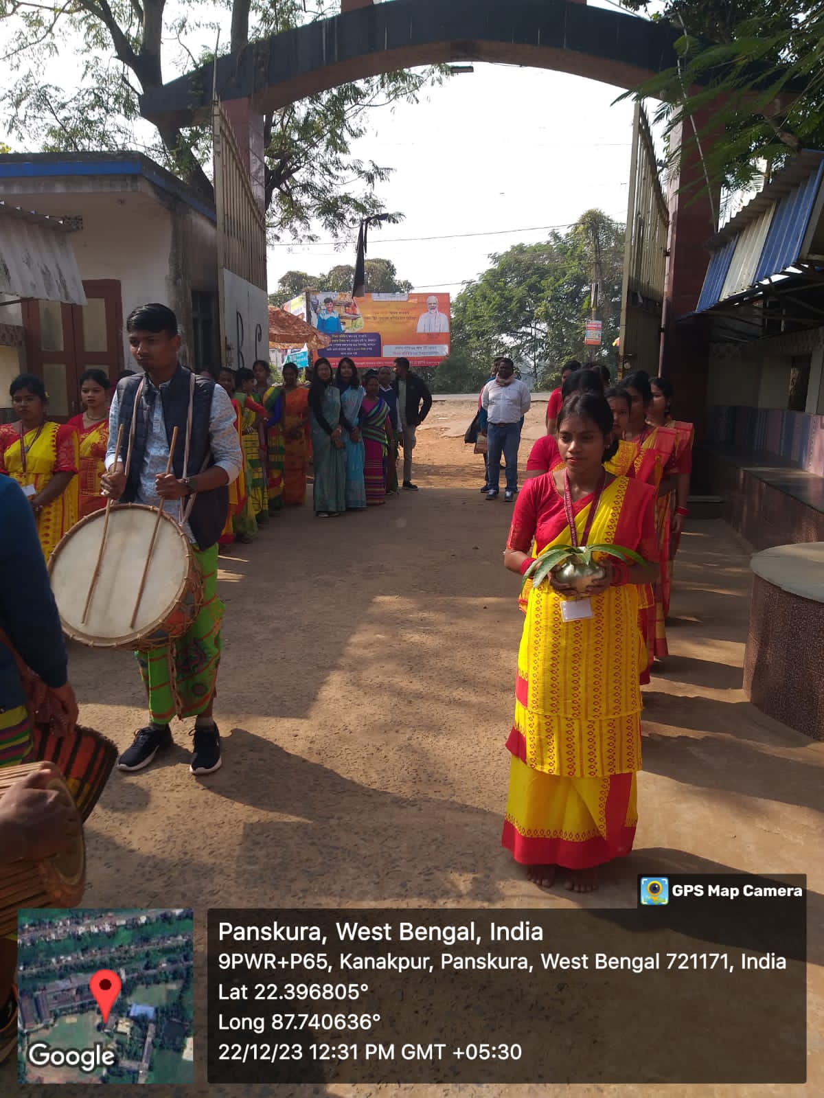 Guest's are welcomed with the Santali traditional musical instrument Dhamsa, Madal and cultural rituals on Celebration of Santali Bhasa Vijayi Diwas on 22nd December 2023 by Department of Santali, Panskura Banamali College (Autonomous).